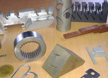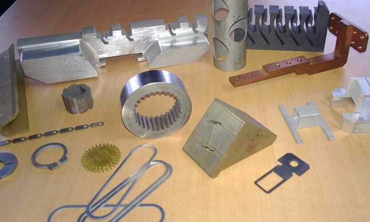 Exemples de pièces (cuivre, aluminium,laiton,acier trempé,carbure de tungstène) découpées par fil