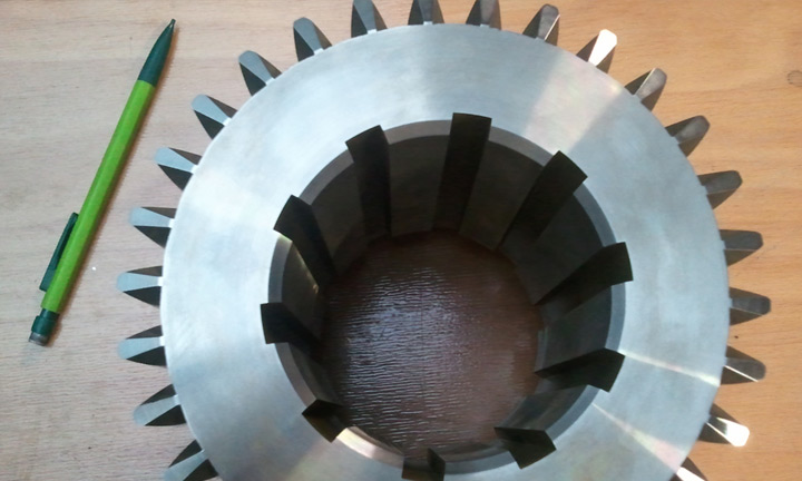 Découpage fil de cannelures dans pignon en acier cémenté trempé