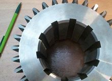Découpage fil de cannelures dans pignon en acier cémenté trempé
